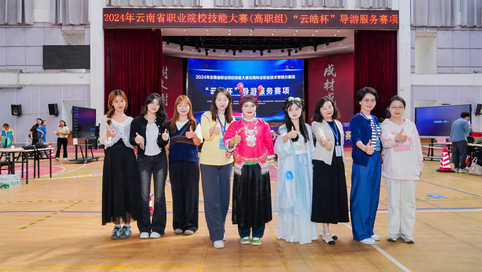 2024年云南省職業(yè)院校技能大賽“云皓杯”導游服務賽項于2024年9月24日—26日在云南林業(yè)職業(yè)技術(shù)學院舉辦,我校珠寶旅游學院2023級導游1班陸慧芬和2023級旅游管理3班朱國珍兩名同學在王穎、玉康坎和龐夢飛三位老師的帶領(lǐng)下參加了此次比賽,同時有4名24級旅游及導游專業(yè)的同學一同前往并觀摩學習。來自云南省各州市23所職業(yè)院校的43名精英選手齊聚一堂,展開了激烈的角逐。比賽分為導游素養(yǎng)及業(yè)務能力測試、導游英語口語測試和才藝運用三個模塊,全面考查了選手的導游服務技能、應變能力和...