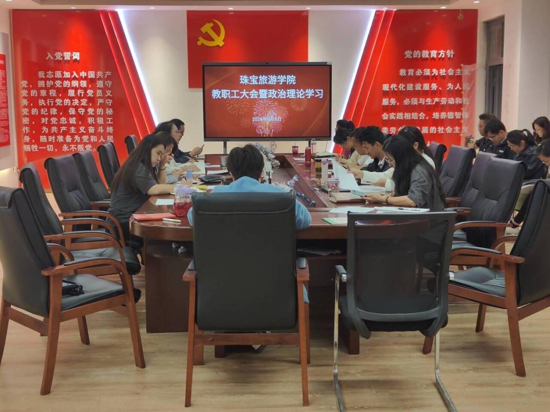 6月5日下午,珠寶旅游學院在勘物樓A303召開教職工大會暨政治理論學習。此次會議由珠寶旅游學院黨委書記張穎主持,全體教職工參加。本次會議共分兩個階段。第一階段為第一議題的學習和專題學習,第一議題由盛之純老師領(lǐng)學,學習習近平總書記在中共中央政治局第十四次集體學習時的重要講話精神,中共中央總書記習近平在主持學習時強調(diào),促進高質(zhì)量充分就業(yè),是新時代新征程就業(yè)工作的新定位、新使命。接著學院黨委書記張穎對目前就業(yè)形勢以及學院的就業(yè)情況進行了分析,要求堅持把高校畢業(yè)生等青年群體就業(yè)作為重中...