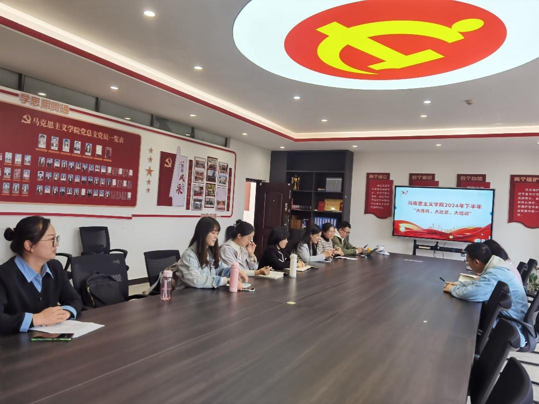 ?10月23日下午,為進一步提升我校思政課教學質(zhì)量,馬院在勘物樓202組織開展2024年10月份“大練兵 大比武 大培訓”活動。 ? 唐蘭蘭副院長圍繞《思想道德與法治》《毛澤東思想和中國特色社會主義理論體系概論》《習近平新時代中國特色社會主義思想概論》《形勢與政策》《中華民族共同體概論》《國家安全觀》六門課程,組織相關(guān)教研室教師進行現(xiàn)場教學研討。? 與會教師針對各課程問題進一步剖析,結(jié)合思政課特點,提出了針對性的...